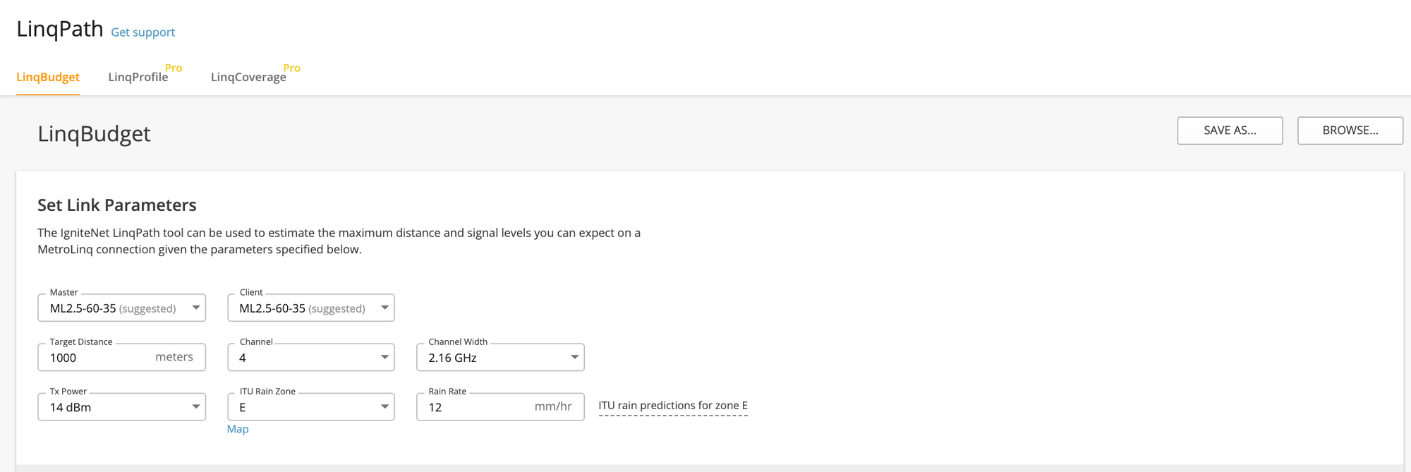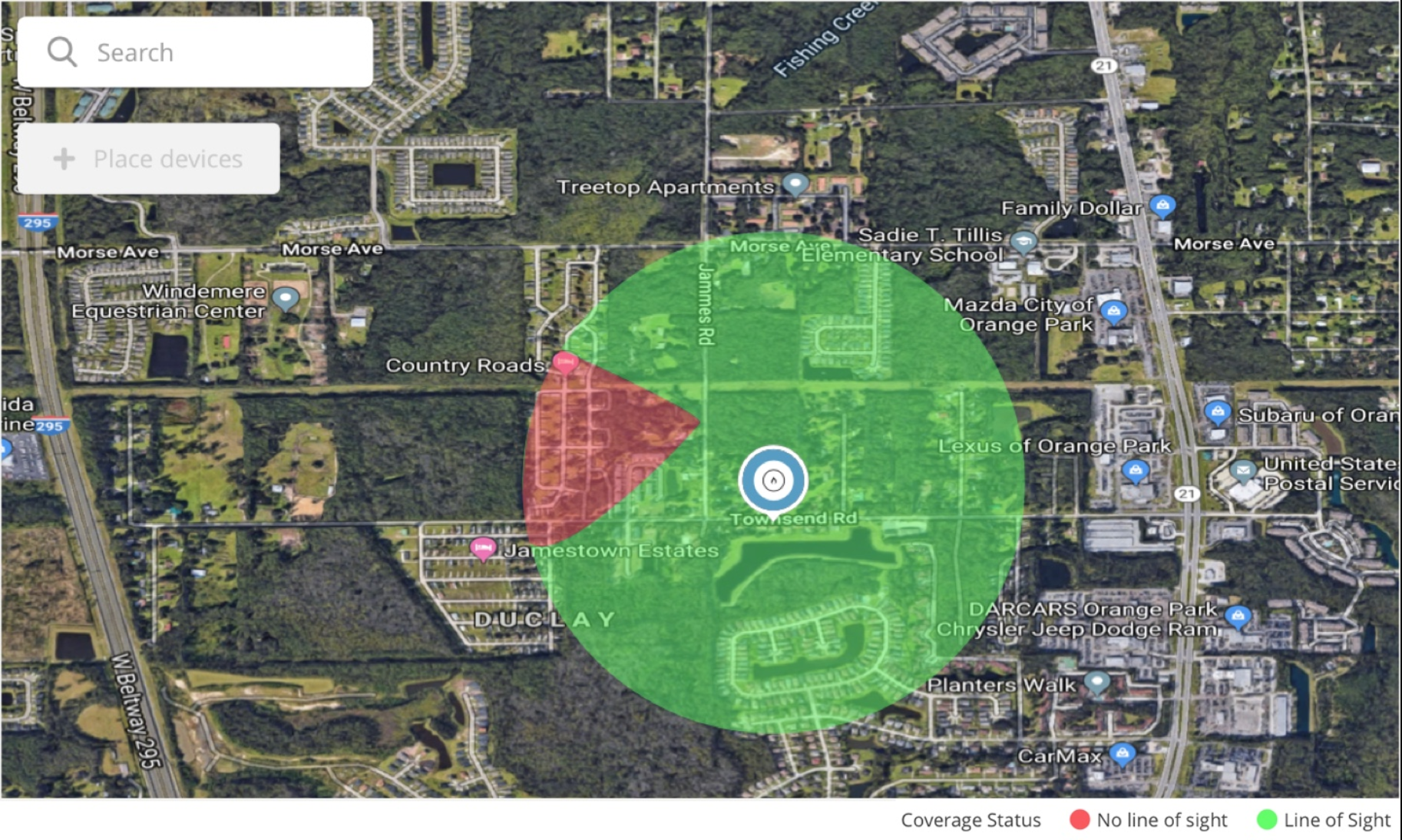 LinqCoverage is the 60GHz point-to-multipoint (PtMP) link planning tool that allows you to place an access point on the map to determine and visualize the expected line of site from that access point.