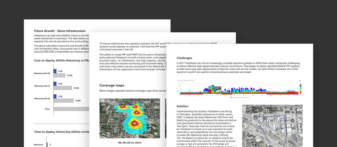 There are some rumors floating around that 60 GHz mm-wave wireless is only great for dense Metropolitan deployments. IgniteNet, along with pioneering service provider Vistabeam, have busted this myth! In our latest case study, Vistabeam uses IgniteNet‘s disruptive MetroLinq Platform to become one of the first internet service providers to bring mm-wave point-to-multipoint technology to rural towns. Rural areas no longer need to wait forever for gigabit internet!